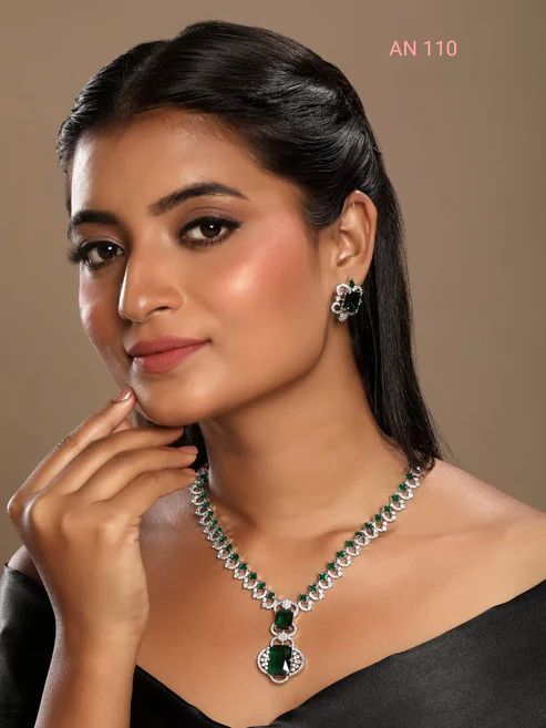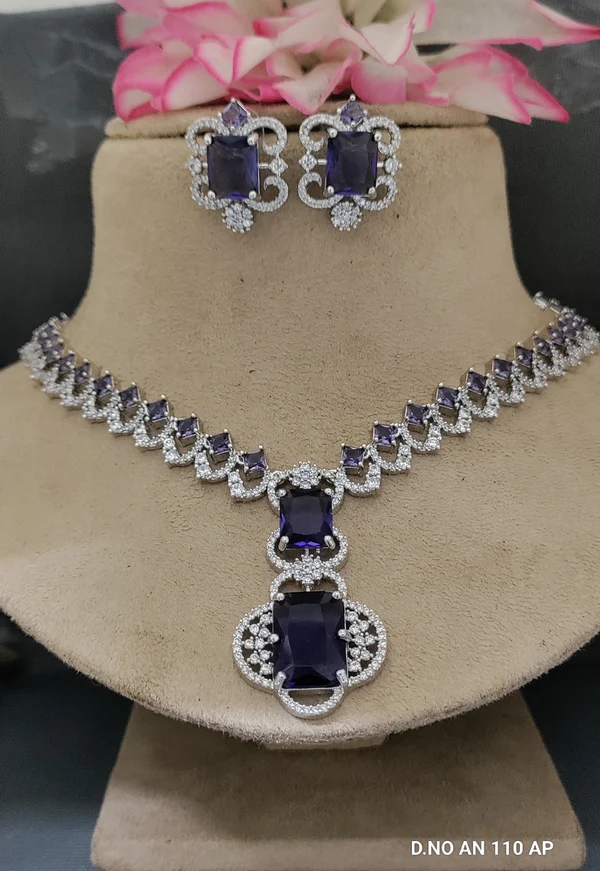 Cz Ad Rodium Necklace Set. Made with high-quality rodium, this necklace set is designed to be both stunning and durable. Perfect for any occasion.